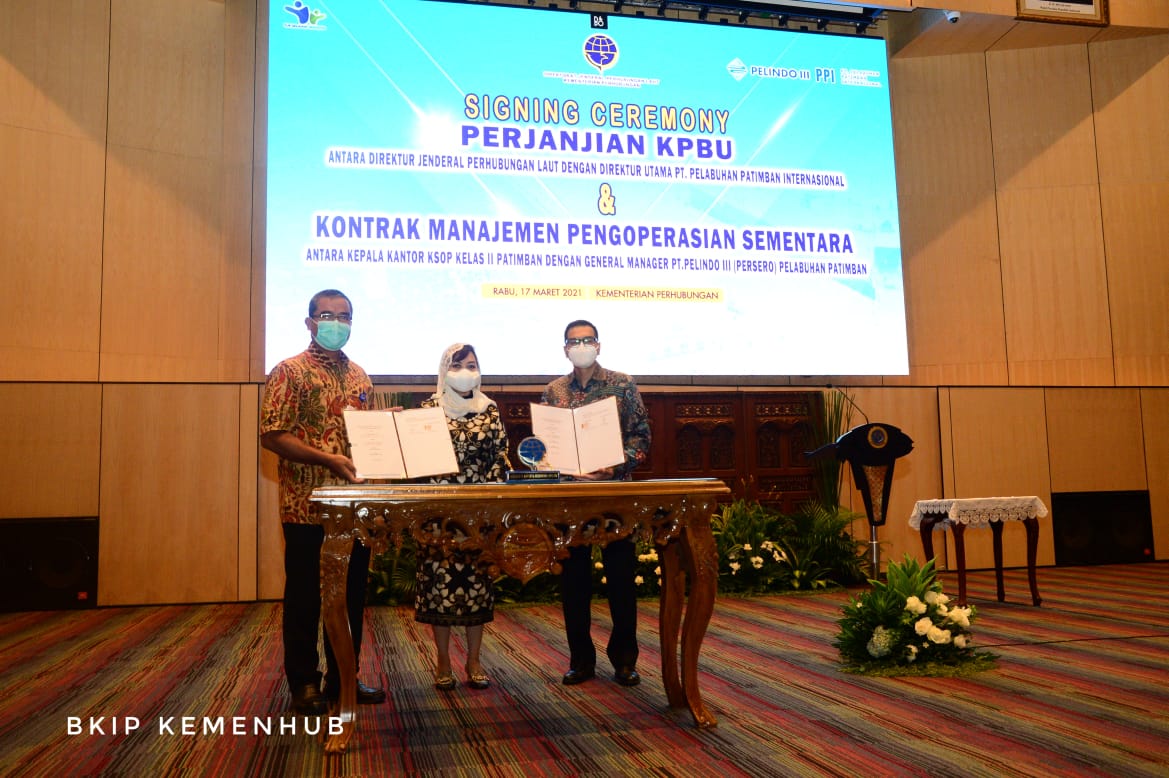 Penandatanganan Perjanjian KPBU dilakukan oleh Direktur Jenderal Perhubungan Laut, R. Agus H. Purnomo dengan Direktur Utama PT. Pelabuhan Patimban Internasional, Fuad Rizal, dan disaksikan Sekretaris Jenderal Kementerian Perhubungan Djoko Sasono di Kantor Kementerian Perhubungan Jakarta, pada Rabu (17/3/2021).