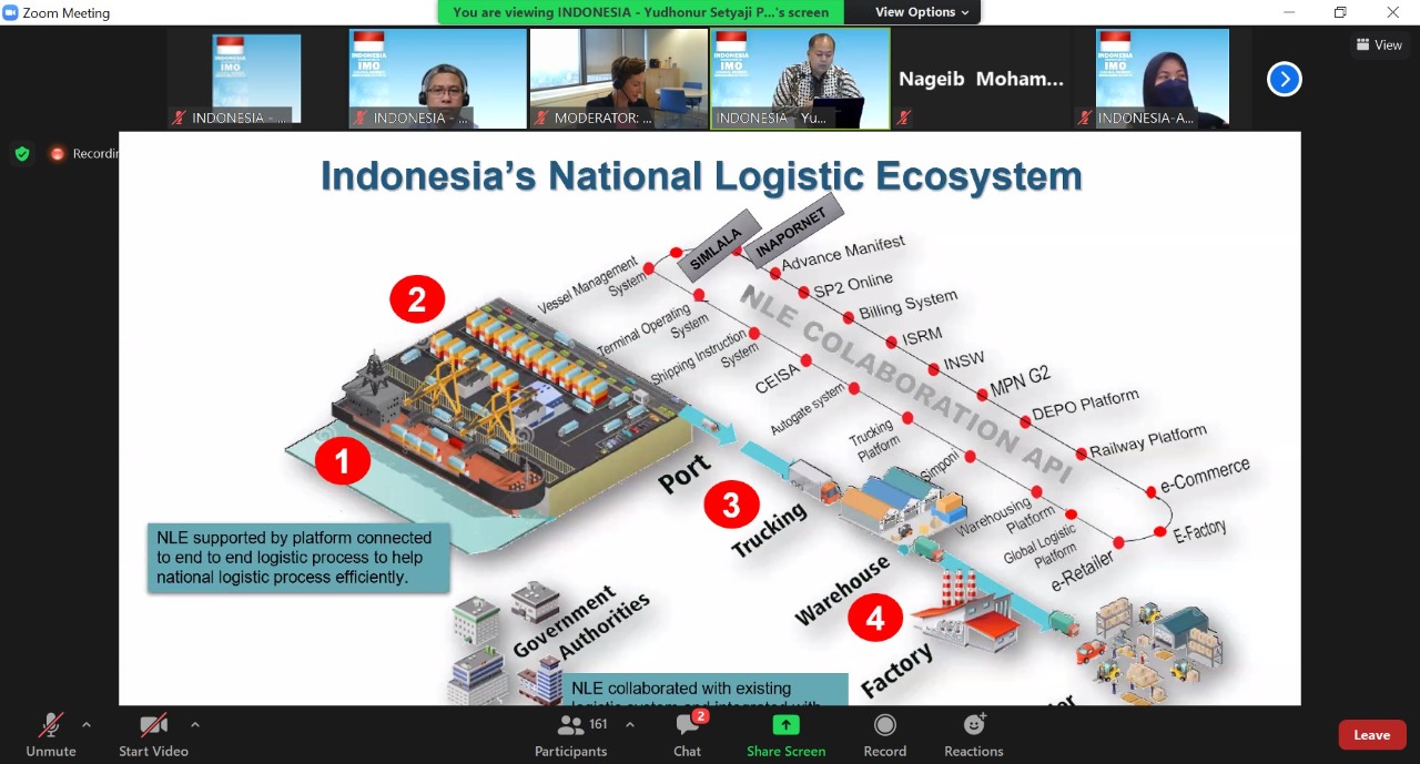 “Indonesia telah mengembangkan sistem Inaportnet sejak tahun 2016 yang dimulai di empat pelabuhan utama, kemudian berkembang di pelabuhan-pelabuhan lain di Indonesia, hingga saat ini telah terintegrasi di 54 pelabuhan.” katanya.
