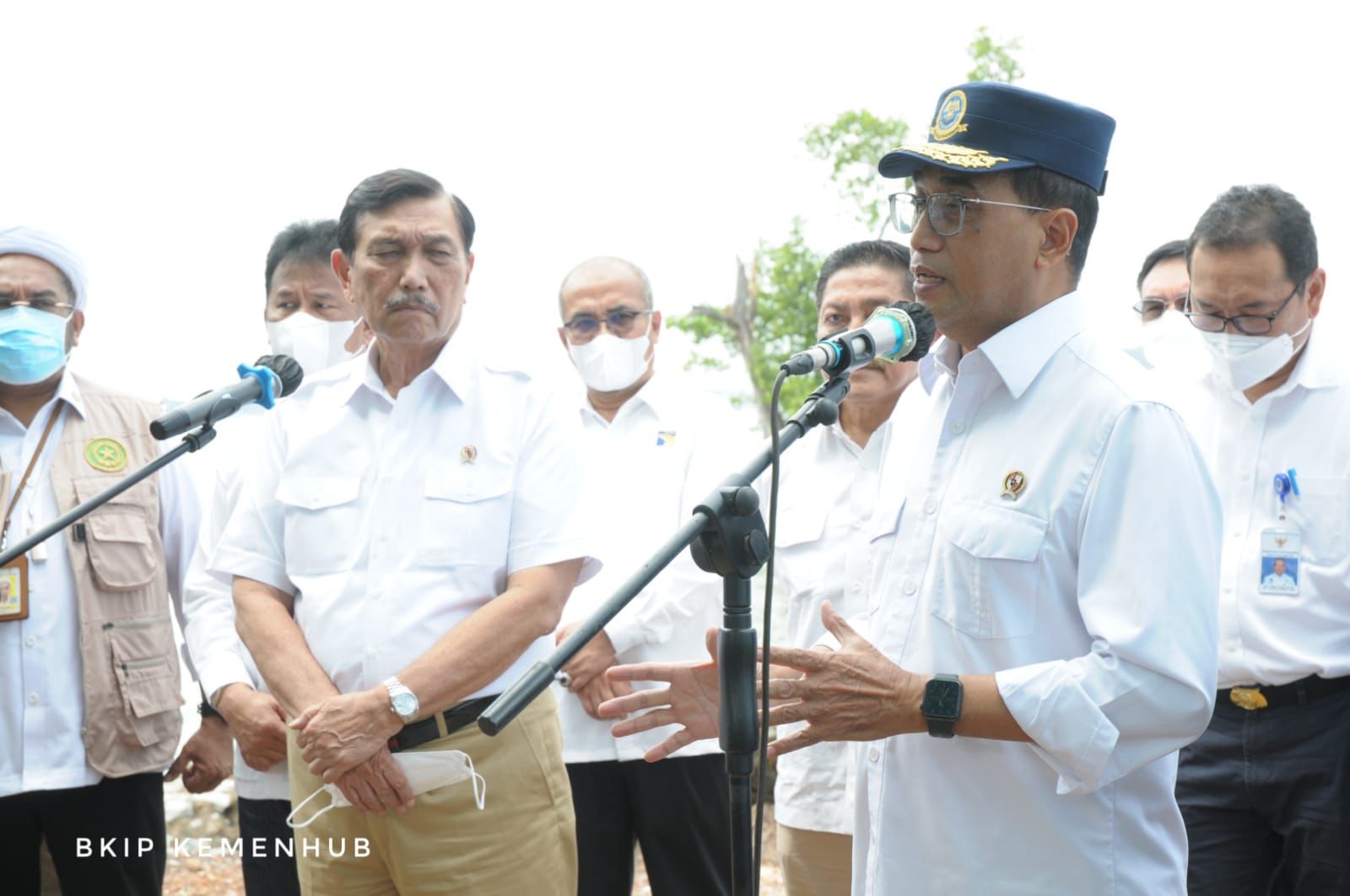 Menteri Perhubungan Budi Karya Sumadi mendampingi Menteri Koordinator Bidang Kemaritiman dan Investasi Luhut Binsar Pandjaitan, pada Senin (24/1/2022), meninjau lokasi calon pelabuhan baru yang terletak di kawasan Tanjung Pinggir, Kota Batam, Provinsi Kepulauan Riau.