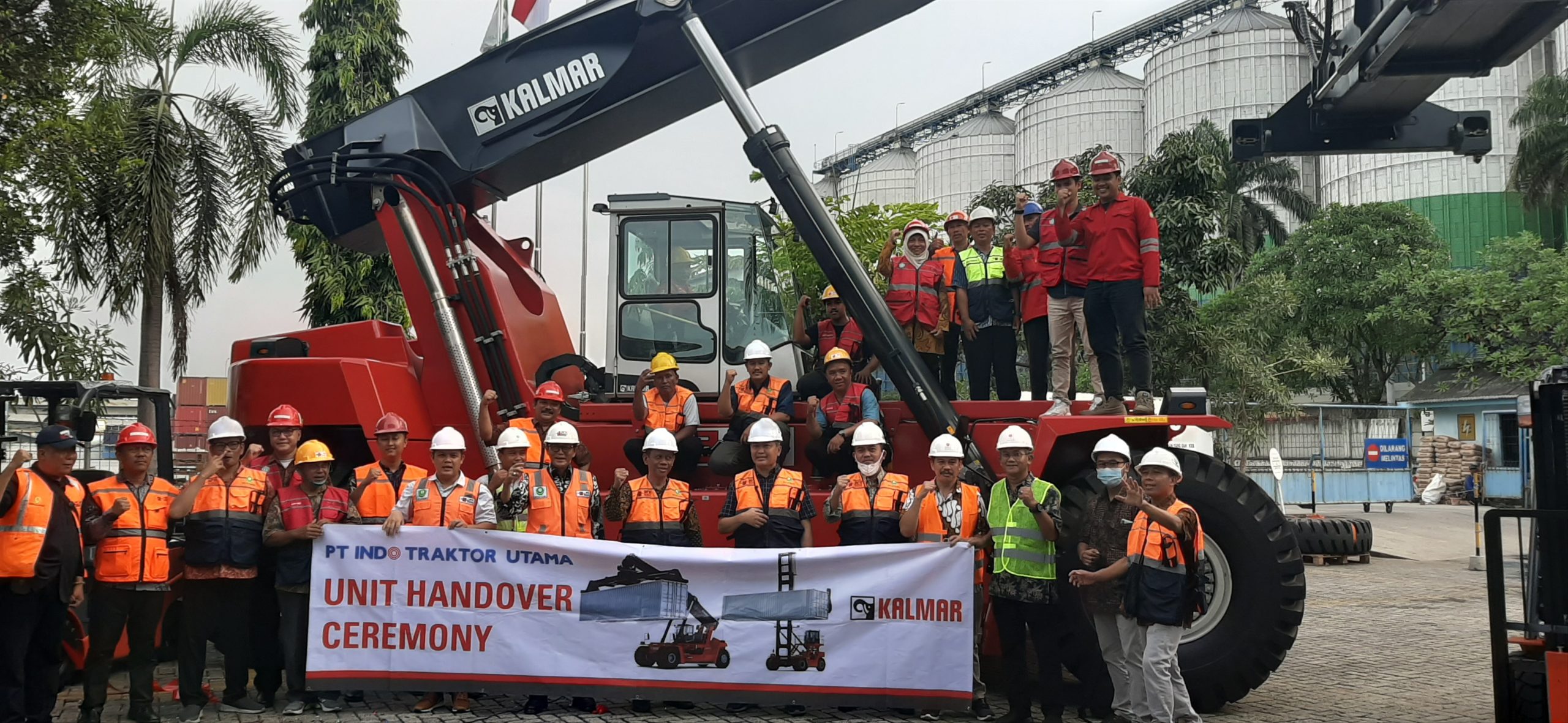 Serah terima alat angkat full container baru (Reach Stacker) merk Kalmar DRU 450-6255  PT Indonesian Air & Marine Supply, itu juga  disaksikan manajemen PT Mandiri Tunas Finance dan Manajemen Indotraktor Utama, serta tamu undangan lainnya.