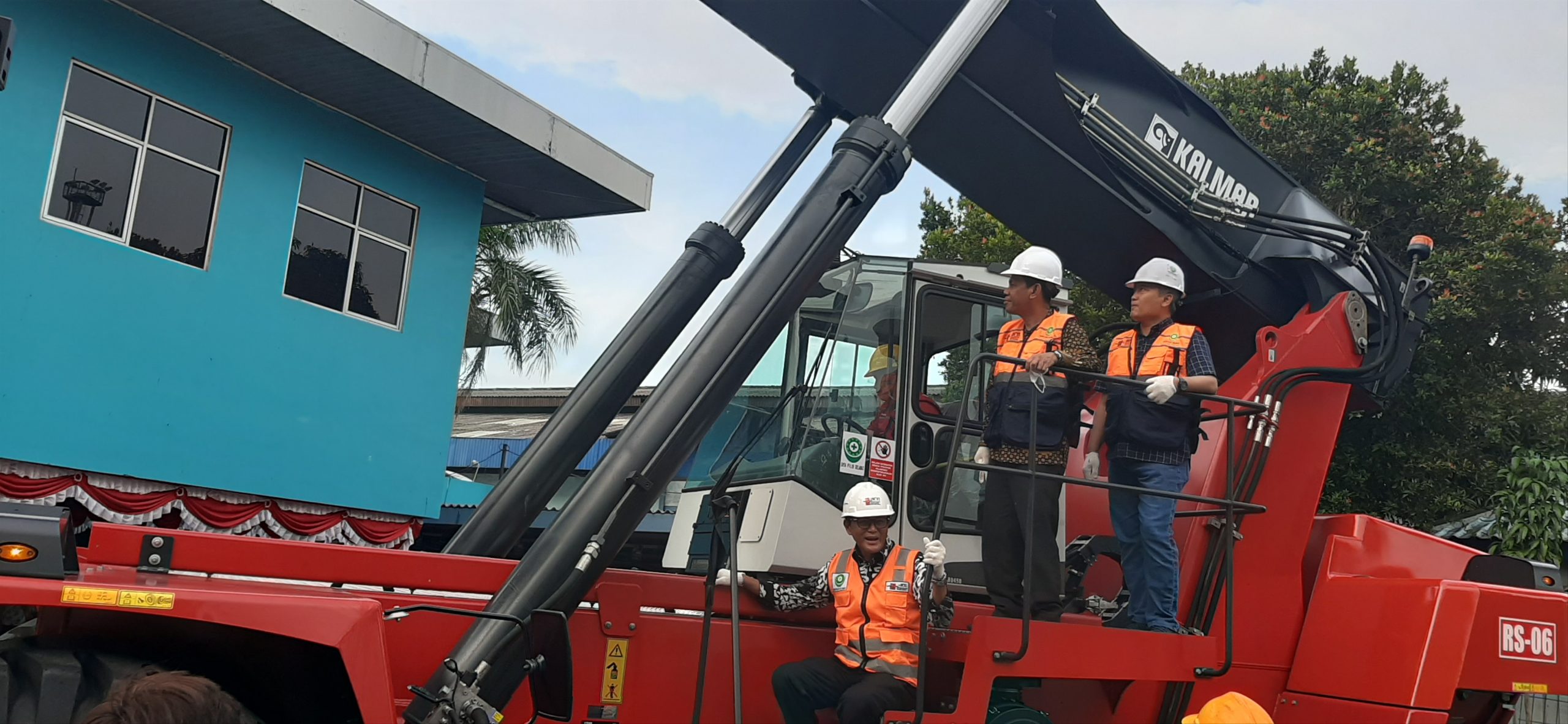 Direksi DKB dan Direksi Airin saat melakukan uji coba Reach Stacker.