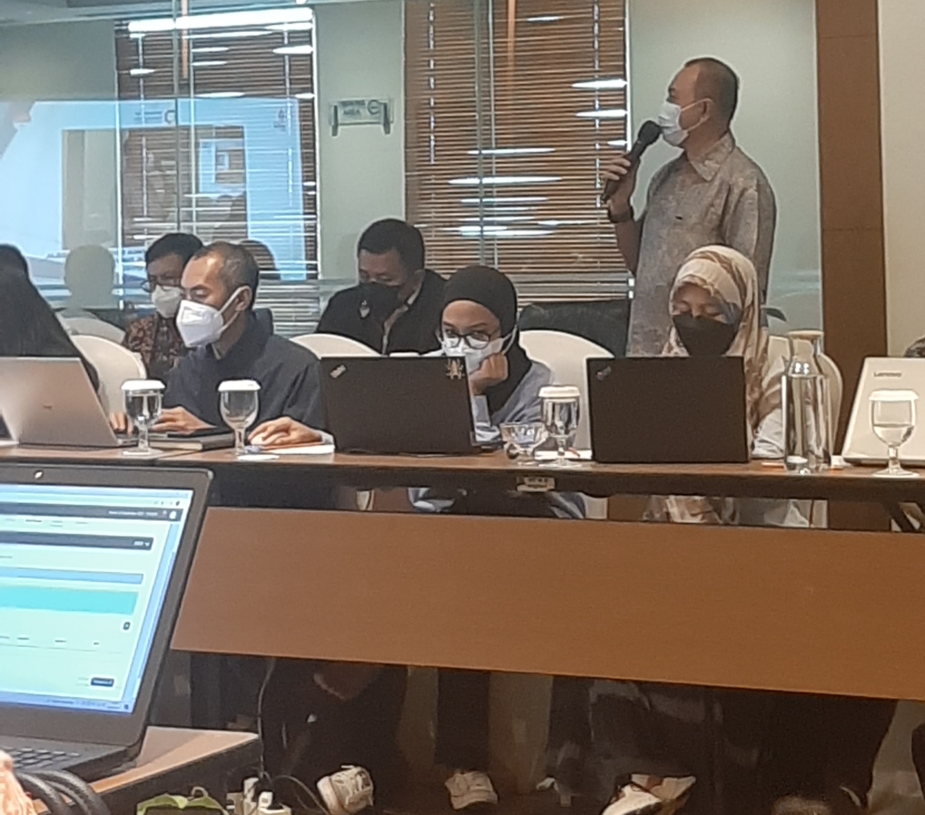 Wakil Ketua Umum BPP GINSI Erwin Taufan (berdiri) saat menyampaikan masukkan GINSI pada FGD tersebut.