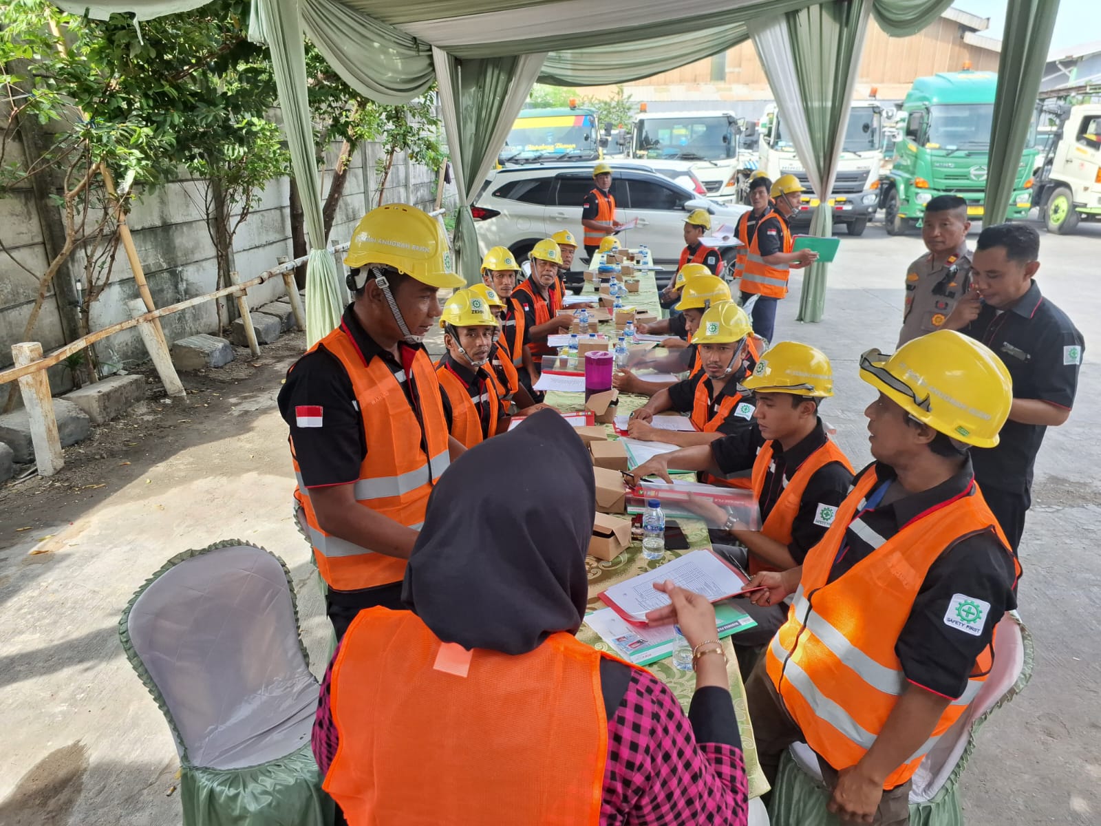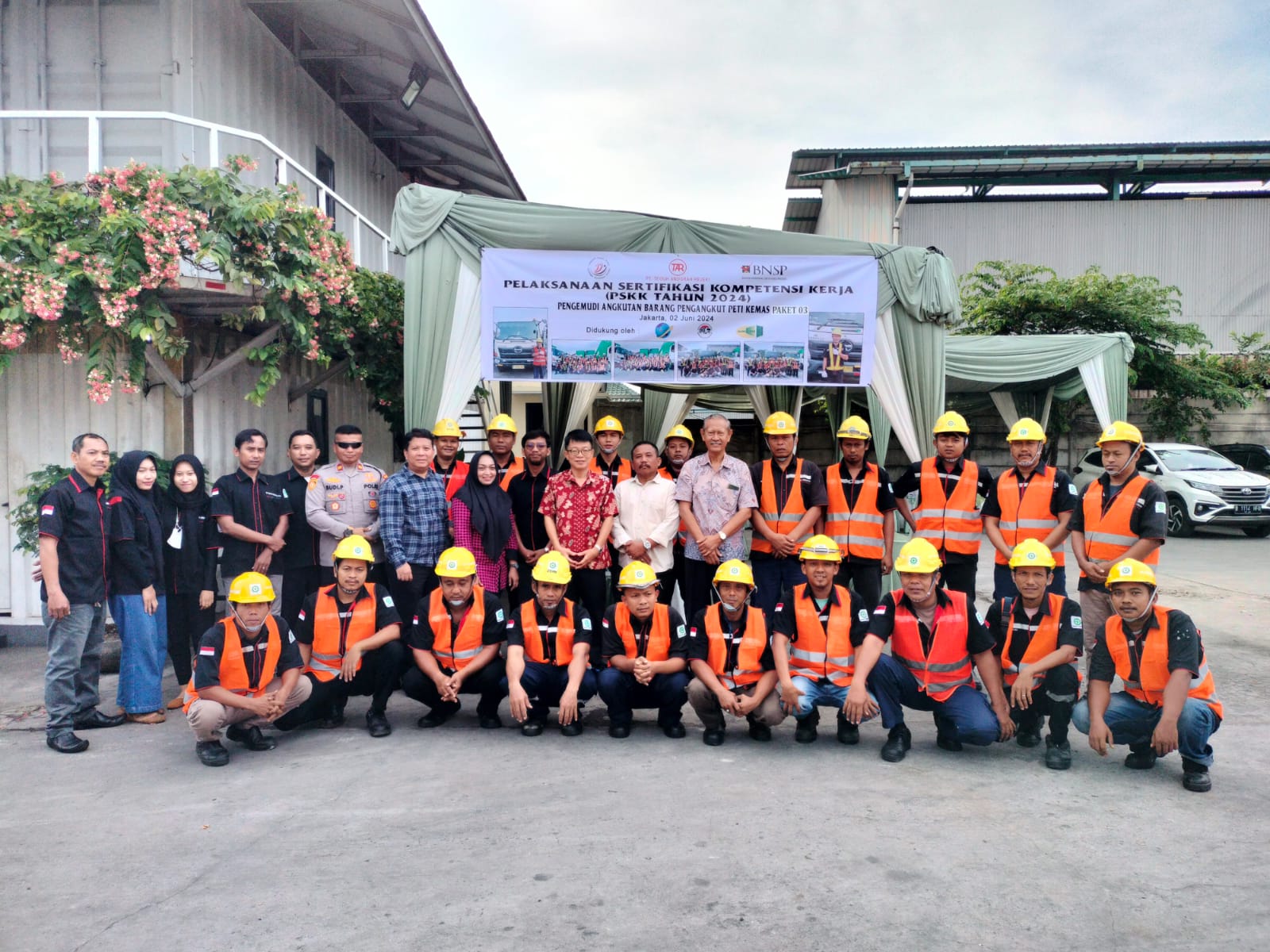 Para sopir PT TAR tersebut nampak sumringah dan antusias dalam mengikuti Pelaksanaan Sertifikasi Kompetensi Kerja (PSKK Tahun 2024) oleh LSP-LIP, yang dilaksanakan di garasi Truk PT TAR di kawasan Marunda Centre Bekasi pada Minggu (2/6/2024).