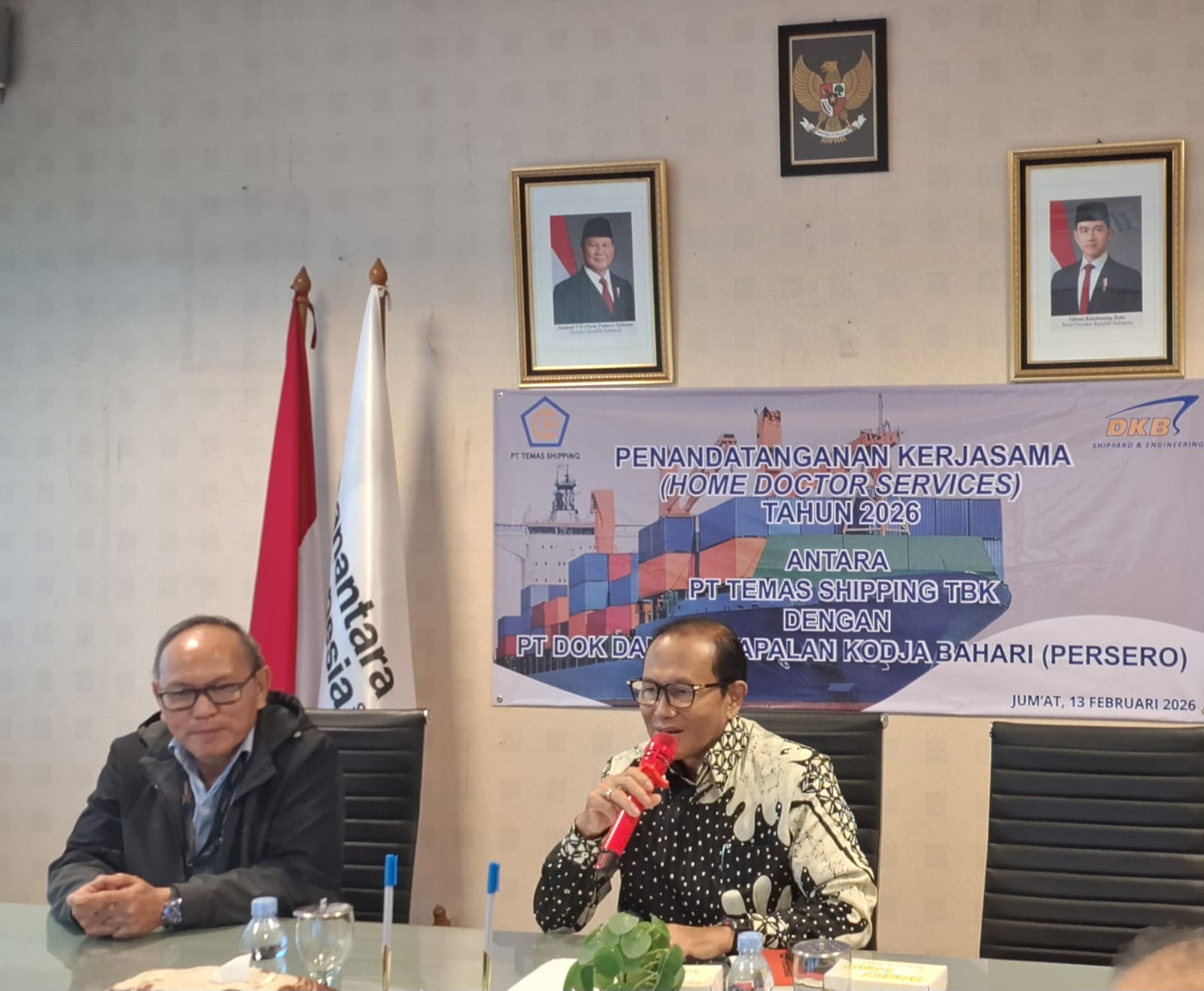Penandatanganan Kerjasama HDS itu dilaksanakan di Kantor Pusat PT DKB pada Jumat (13/2/2026) yang dilakukan langsung oleh Plt Dirut PT DKB (Persero) Rudolf Valintino dengan Direktur Temas Shipping Tbk, Dicky Achyar.