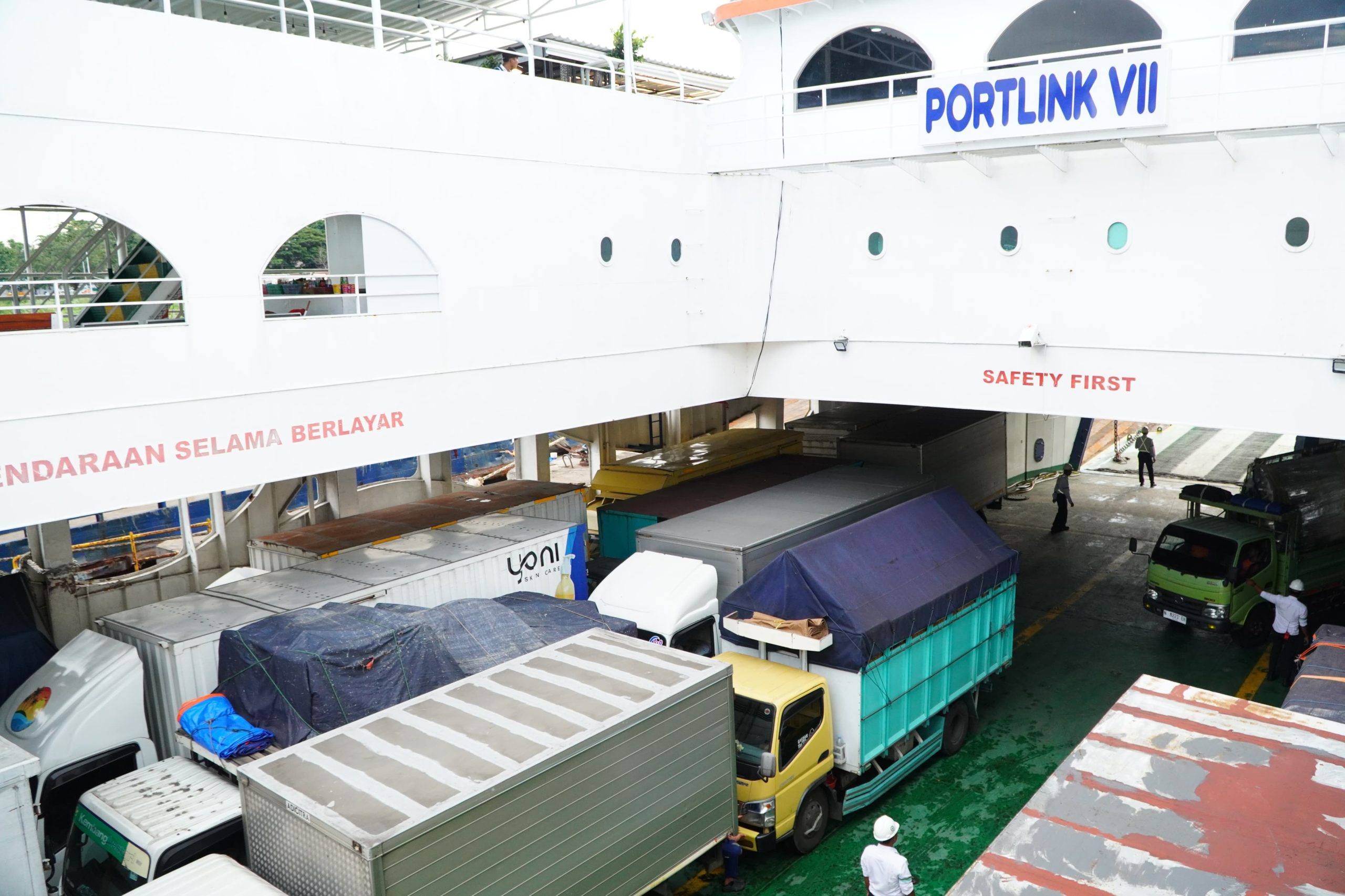 Dari dalam pelabuhan, percepatan dilakukan melalui pengaturan pola muatan yang lebih terstruktur. Dermaga 1, 2, dan 3 difokuskan untuk kendaraan penumpang—roda dua, roda empat, dan bus.