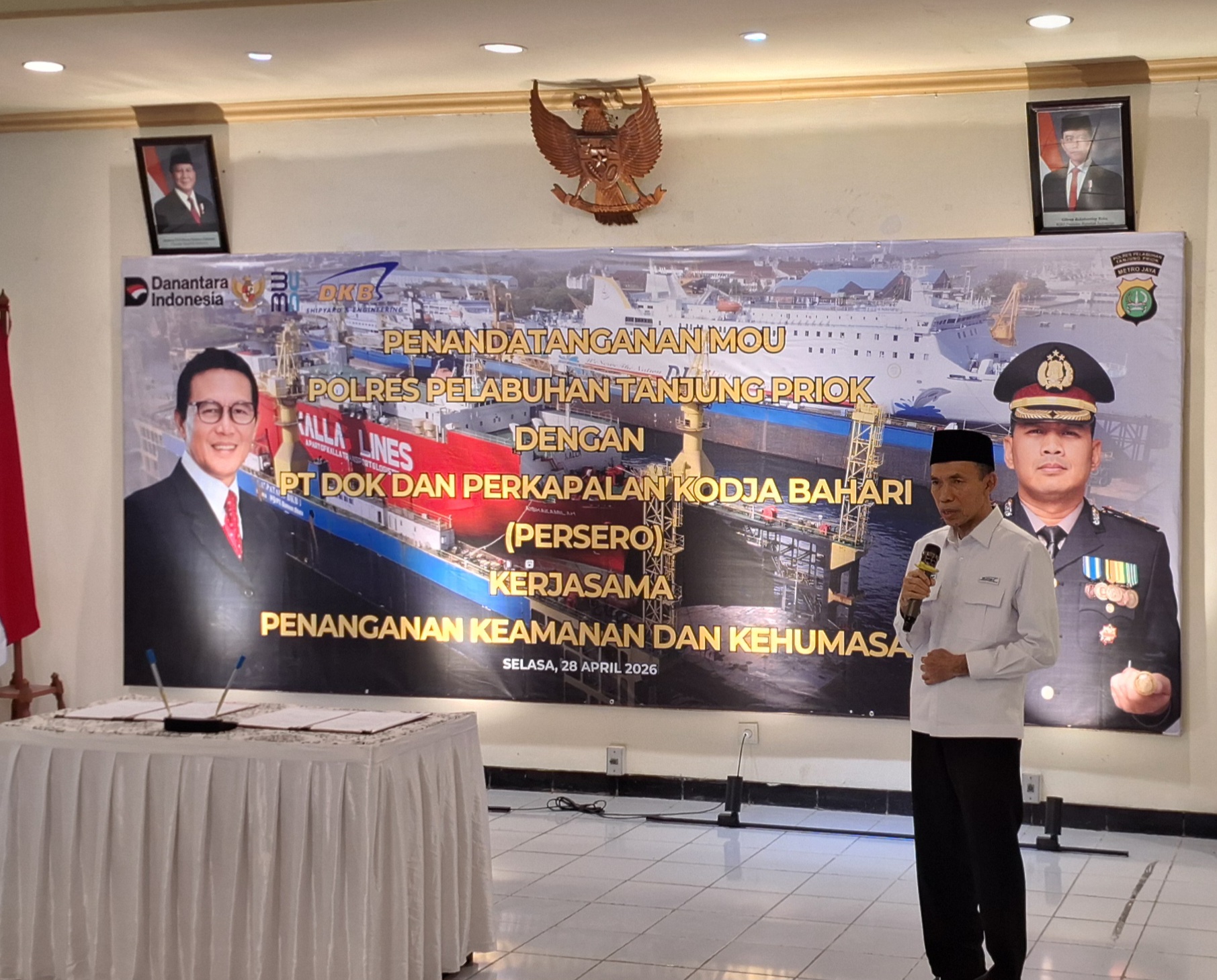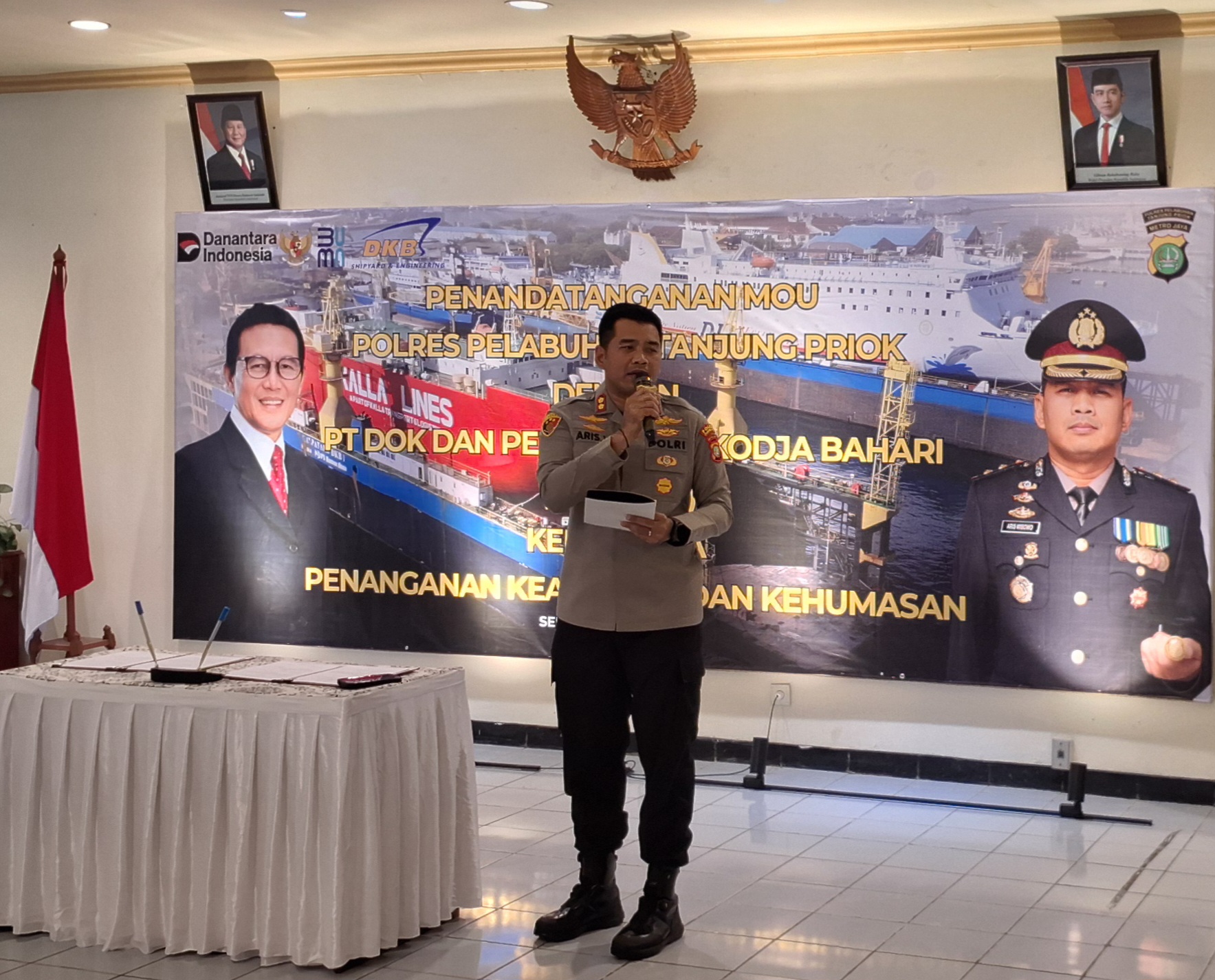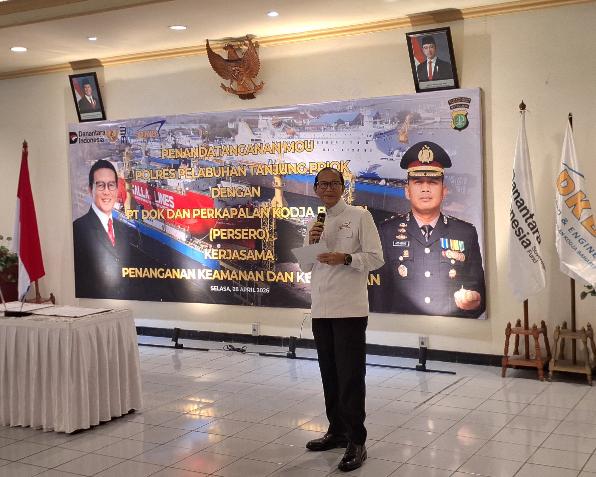MoU tersebut di tandatangani langsung oleh Plt Dirut PT DKB Rudolf Valintino dan Kapolres Pelabuhan Tanjung Priok, AKBP Aris Wibowo, S.I.K., M.H, di kantor Pusat PT DKB yang berlokasi di Jalan Sindang Laut Tanjung Priok Jakarta Utara pada Selasa (28/4/2026).